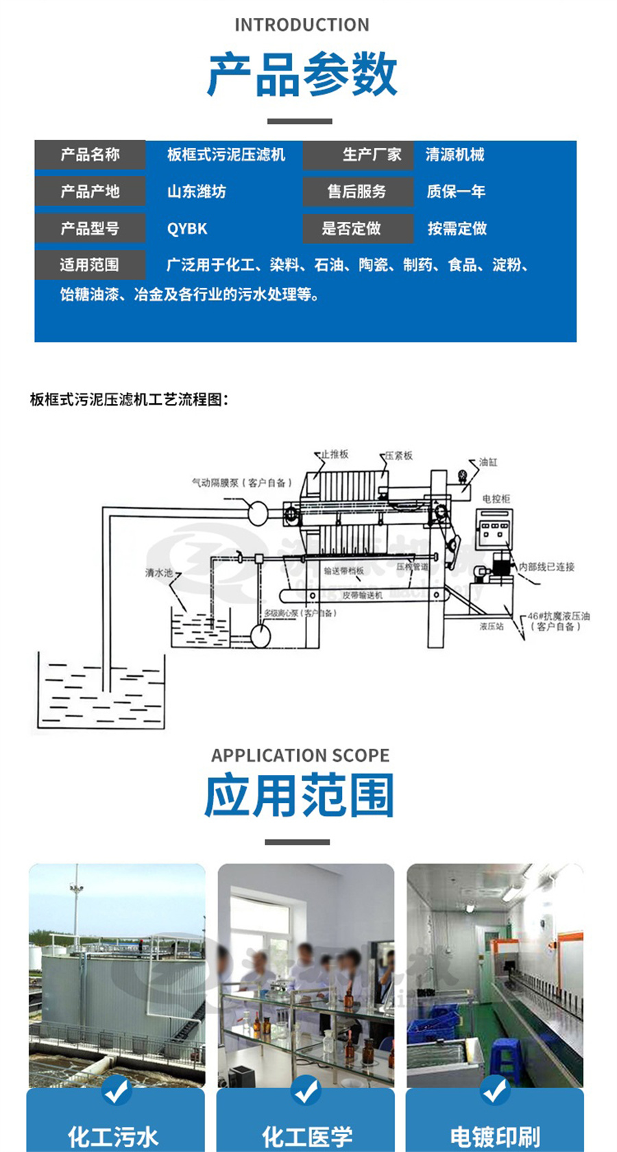 三、優(yōu)點(diǎn):板框式壓濾機(jī)的優(yōu)點(diǎn)是:結(jié)構(gòu)較簡(jiǎn)單,操作容易,運(yùn)行穩(wěn)定,保養(yǎng)方便;過濾面積選擇范圍靈活,占地少;對(duì)物料適應(yīng)性強(qiáng),適用于各種中小型污泥脫水處理的場(chǎng)合。